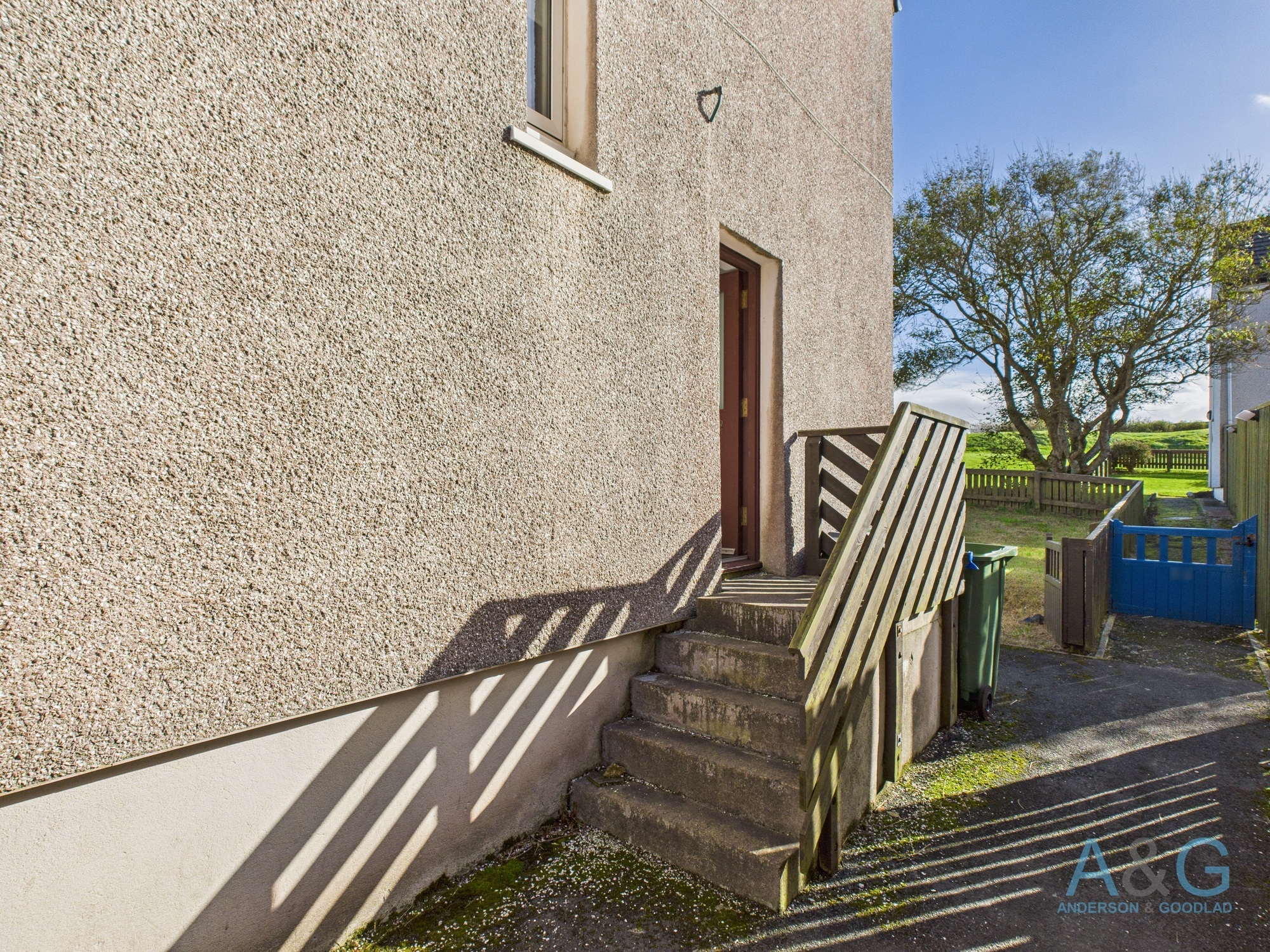Heading south out of Lerwick take the second left hand turn after Sound Service Station signed posted Nedersund. Thereafter, take the second right hand turn into Nederdale signed posted No.s 1 to 52. Carry on along the road pasted the garages on the left. 18 Nederdale is at the rear of the garages.