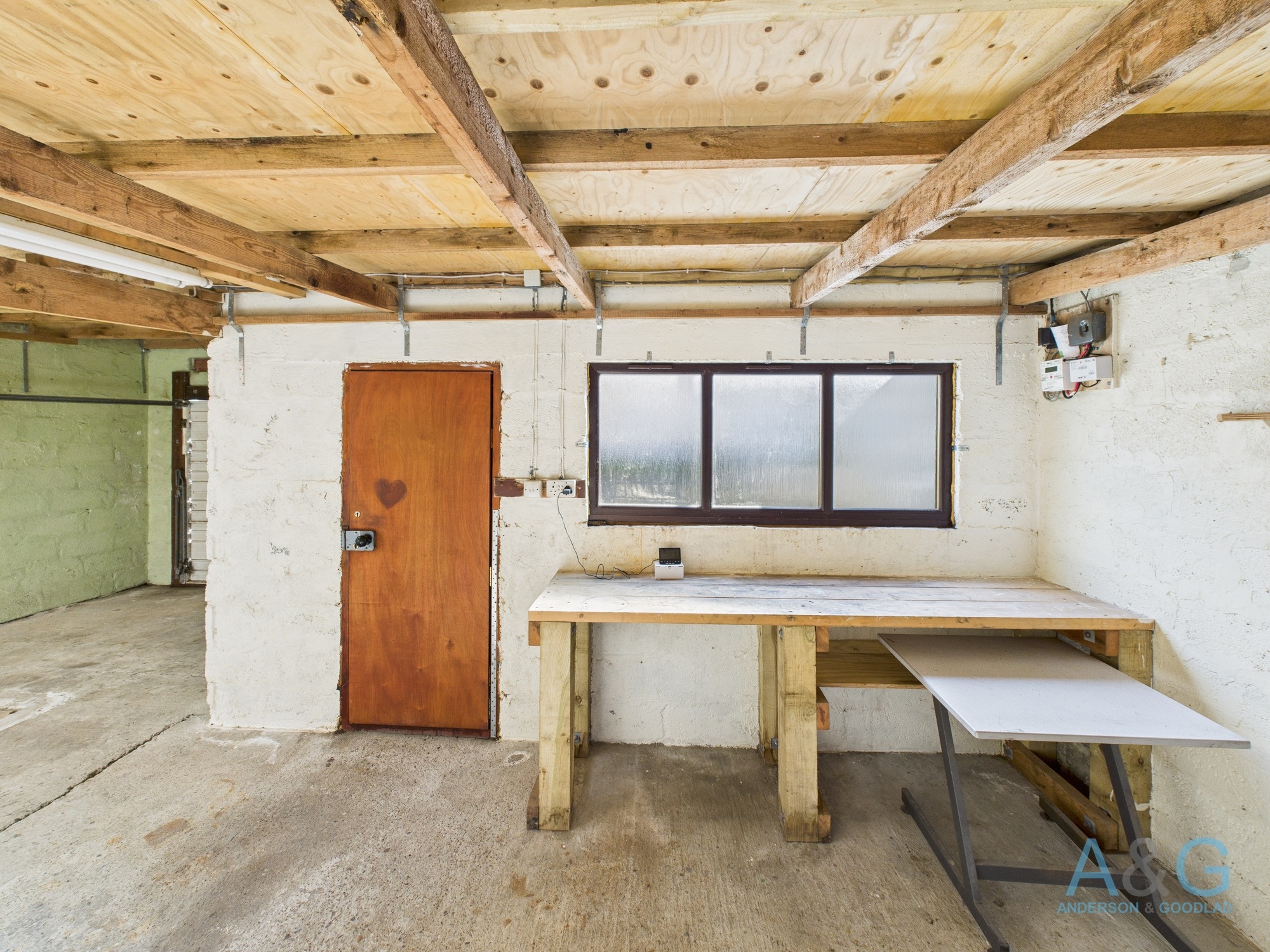 There is a lockable manual up and over door leading into the Garage with an additional single door providing access into the workshop. The Garage also benefits from electricity, lighting and work bench, with the roof, window and door being renewed.